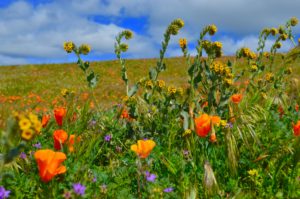 Antelope Valley, CA is a vibrant place to visit during the spring months, especially this year, as the winter rain yielded an abundance of wildflower activity called the Super Bloom. Nature lovers are flocking to Antelope Valley California Poppy Reserve to enjoy the fascinating blankets of bright orange poppies and yellow goldfields, which can be seen now through mid to late April. Antelope Valley California Poppy Reserve is a state park with 8 miles of trails (both paved and dirt), sweeping views of the San Gabriel Mountains and beautiful wildflowers.