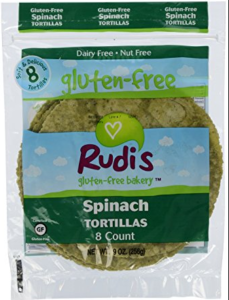 My first stop was Whole Foods. Usually they offer a broad selection of organic foods, so I thought this would be a one and done! I was disappointed to discover that my local Whole Foods didn’t have my gluten free organic wraps. I was anxious to start my gluten free diet, so I grabbed the next best thing, Rudi’s Spinach Tortillas. I put one in the oven for a few minutes to heat so it wouldn’t crumble apart and made a turkey sandwich. It tasted great! I decided to mull over the ingredients because I really try to stick to a 100% organic diet at home and this product is not organic. I was not happy about the fillers listed on the package which include: sodium bicarbonate, monocalcium phosphate, xanthan gum and guar gum. I didn’t want to settle for a wrap with ingredients that are unfamiliar to me, so back to the grocery store I went.