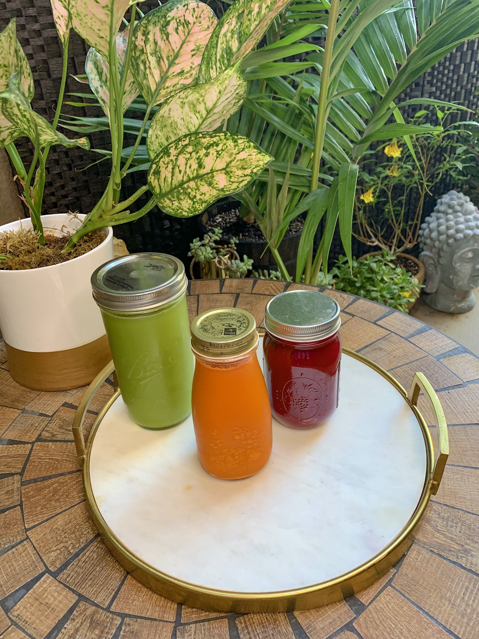 Beets: 1 Apple + 2 Beets + 7 Carrots + 3 inches of Ginger +1 oz Lemon Juice