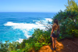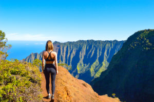 If you are looking for some serious adventure and the most incredible view of the Nā Pali Coast, then I highly recommend hiking Kalepa Ridge Trail in Koke’e State Park. If I had to pick only one thing to do my entire trip this would be it! Kalalau Lookout point marks the beginning of Kalepa Ridge, however since this trail is unofficial there is no actual trailhead. Go to the left of the chain link fence, hop it and make your way onto the super narrow and very muddy path. The lush green vegetation will immediately envelope you. Be prepared for a muddy volcanic soil since Koke’e State Park gets an abundance of annual rainfall and is actually one of the wettest spots on earth. Never attempt this hike after or during the rain. I highly suggest wearing hiking boots or trail running sneakers as they have grips. Once the brush opens up the most jaw dropping panoramic view of the Kalalau Valley and the Nā Pali Coast will leave you completed stunned! I hiked 1 mile on this path and started to get pretty nervous with the steep drop offs. The trail is 4,000 feet up and the single file path runs along the ridge. Despite the level of danger it was totally worth it to experience that kind of beauty.