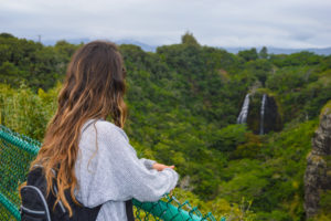 If you want to see a waterfall with no leg work then Opaeka’a Falls is perfect for you. After a long day at the beach I wanted to get a little sight seeing in but I was too tired for a hike, so driving up to Opaeka’a Falls was the perfect way to end the day. The waterfall is located on the East Side of the island in Wailua and is part of the Wailua River. The waterfall drops 150 feet and is surrounded by dense greenery.