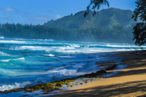 Ke’e Beach is the last beach on the North Shore; the road literally dead ends here. The drive along the North Shore is truly unforgettable. Lush green terrain give way to views of pristine white sand beaches and aqua water. Ke’e Beach and Hanakapi’ai Trail are both accessible by the parking lot where the road ends. In winter months the rip tides at Ke’e Beach make swimming not only impossible but forbidden. Lifeguards are stationed on the beach and closely monitor the area to make sure no one attempts getting close to the water. With that being said you may think it is a waste of time to make it a point to see this beach however, you could not be more wrong! Ke’e Beach has the most crystal clear aqua blue water. Just sitting and looking into the ocean will leave you feeling awestruck. For an even better vantage point hike the Hanakapi’ai Trail for about a half mile and you will be rewarded with an even more gorgeous view of the ocean surrounded by evergreen vegetation. This trail has slippery rocky terrain so I would recommend wearing sneakers. Hanakapi’ai Trail is a total of 4 miles out and back and Hanakapi’ai Beach marks the halfway point should you decide to continue the remaining two miles to Hanakapi’ai Falls making a total 8 miles round trip. This trail is strenuous and slippery. Another precaution alert: do not attempt to swim at the beach. I have read horror stories of people getting swept away by the rip currents. The North Shore is known to be the most beautiful part of Kauai however, the ocean is the most treacherous.