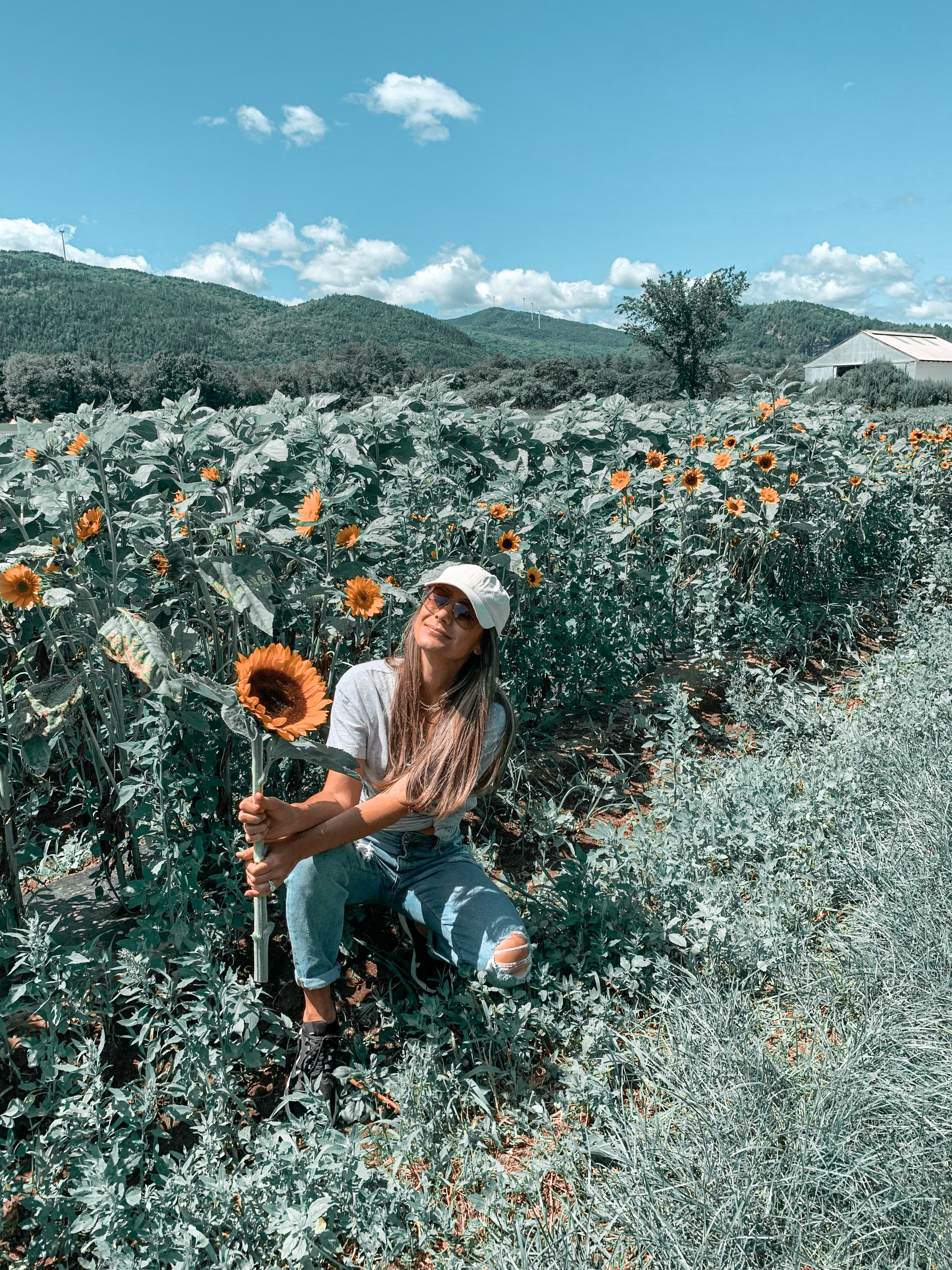 After we snapped some pics at the covered bridge we hopped back in the car and started heading out to find a restaurant for lunch. Paul drove past a a farm stand and a food truck with local farm fresh food so, I obviously yelled at him to turn around! We were both super happy we did because they had picnic benches looking out at a field of flowers and plants. To me this was far better than sitting inside a restaurant to eat!