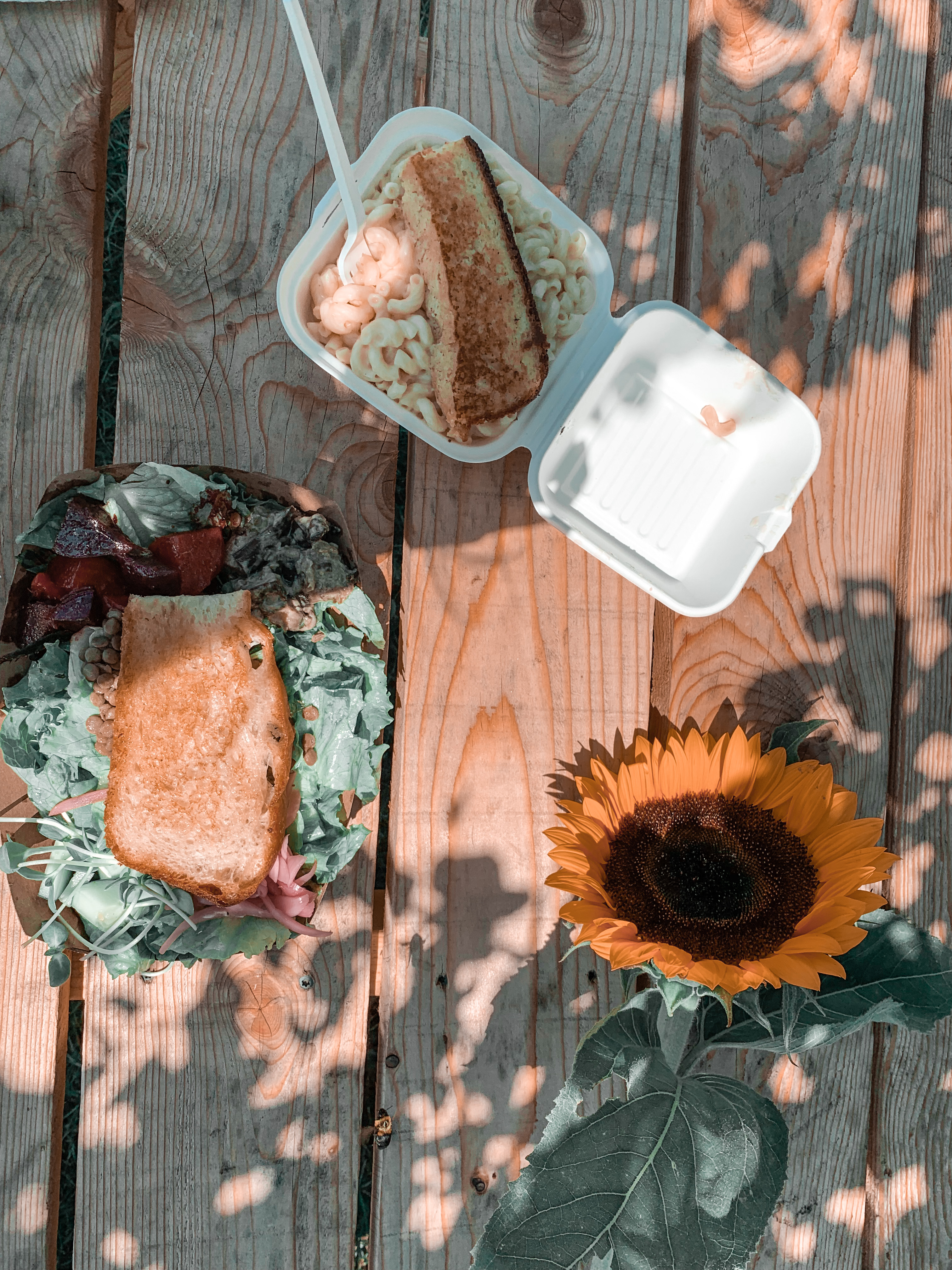 Longview Farm sells seasonal produce straight from their fields and conveniently has a food truck called Nourish Proper Foods on site. I ordered a summer salad with eggplant, tahini and pickled beets and onions and Paul ordered the mac n’cheese. I got an iced coffee and also purchased a sunflower from the farm stand. After we ate lunch we walked the fields a bit and enjoyed our last moments alone before the wedding.