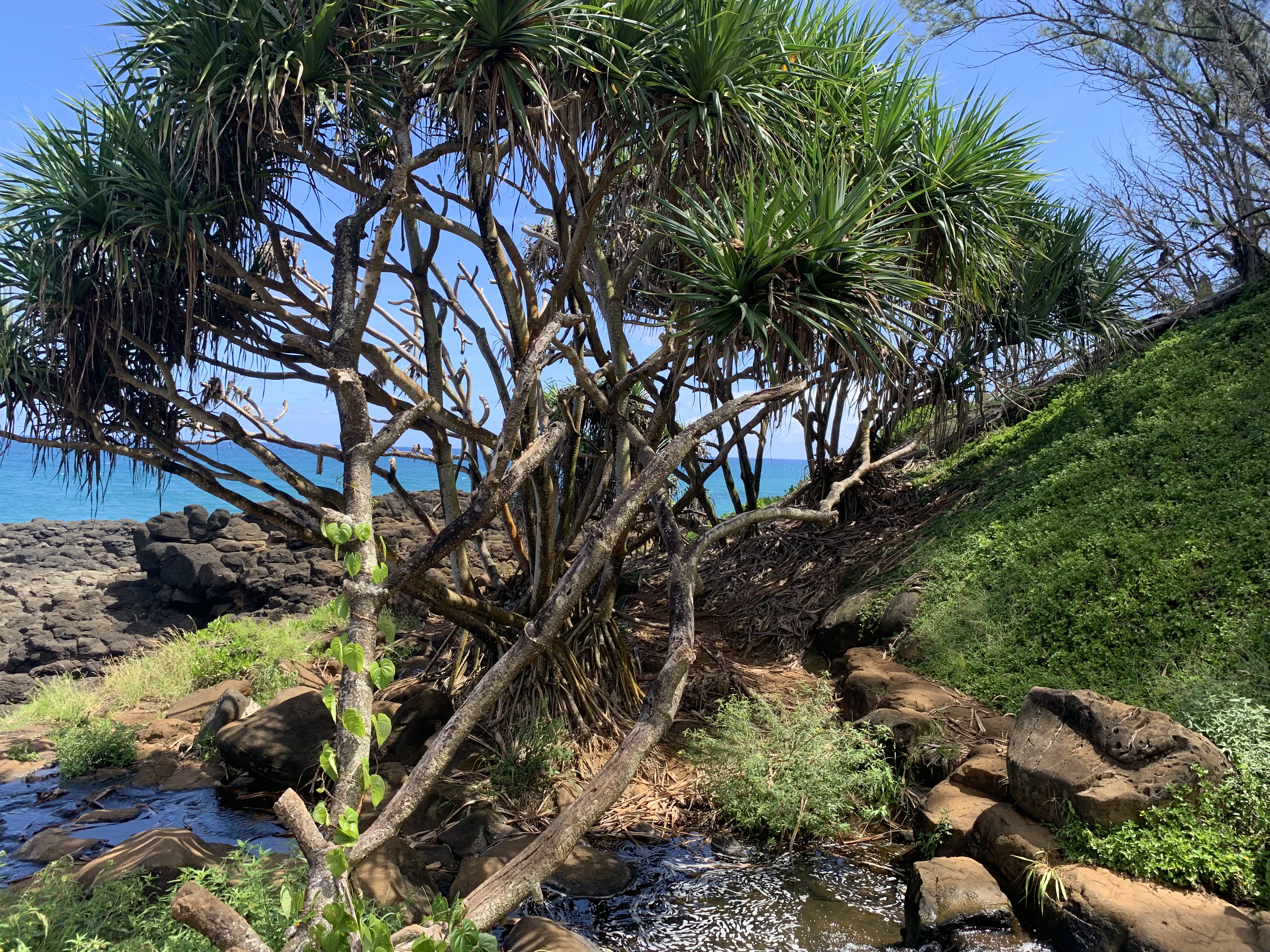 Once you make your way from the forest you will have stunning ocean views with natural rock formations and palm trees making this muddy, vine-filled hike worth it!