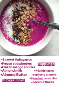 These recent LA heat waves are leaving me with a craving for an ice cold smoothie bowl by the pool! Tell me that doesn’t sound perfect on these sweltering summer days. I’m really loving the bright color of dragon fruit also known as pitaya, so I blended up a delicious summer smoothie bowl using a Pitaya Plus frozen packet. Yum!
