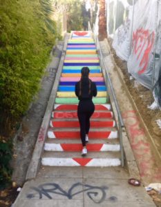 Silverlake, a rather hipster area in Los Angeles known for its outdoor art, has an abundance of painted staircases to climb. These steps are more like works of art and make exercise fun. If you aren’t used to steps then this work out will kick your butt! No but really, your backside will be hurting! I’m an avid hiker and going up and down stairs definitely works different muscles in my legs and bum.